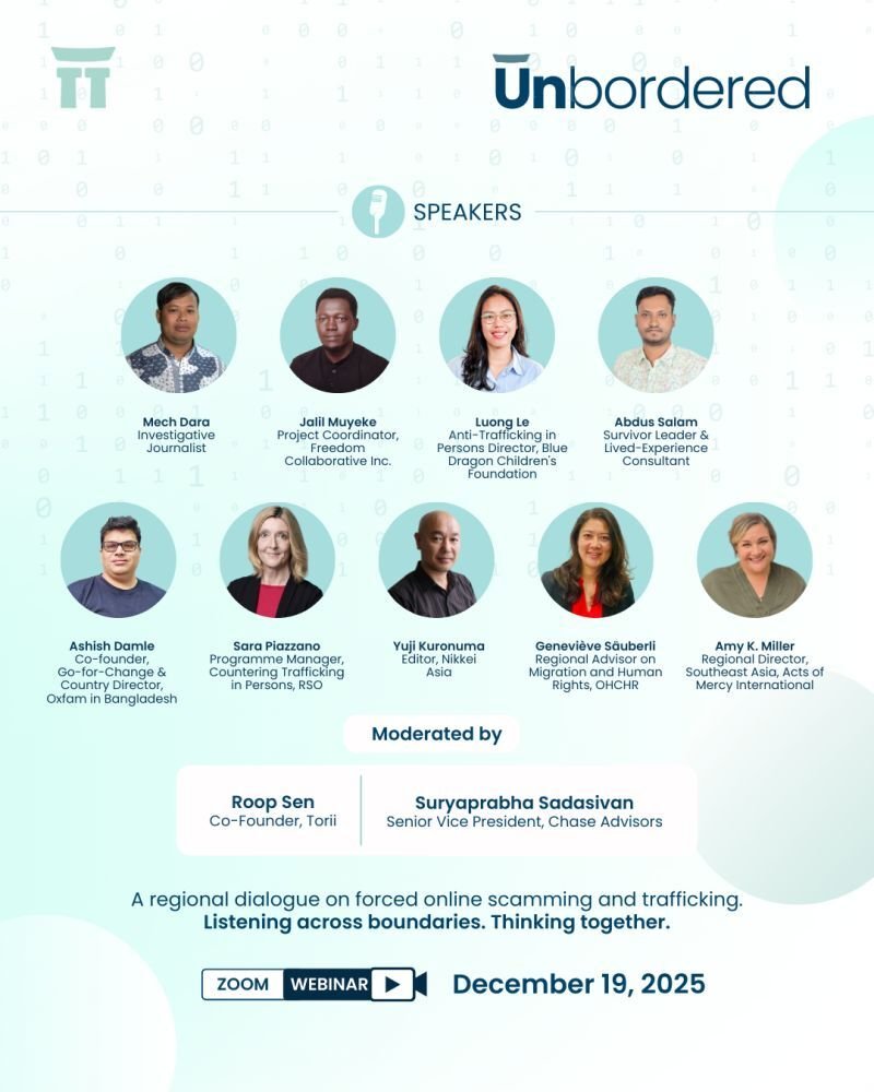 特殊詐欺拠点に人身取引された被害者を「犯罪者」ではなく「強制労働の被害者」として再定義するウェビナーを開催。東南アジア・南アジアを横断し、法執行機関やジャーナリスト、金融機関を巻き込んだ国際的な保護ネットワークの構築を目指します。2025年12月19日に、当事者、ジャーナリスト、草の根NGO、国際NGO、国連機関の人たちが参加し、地域横断型ウェビナーを実施しました。
