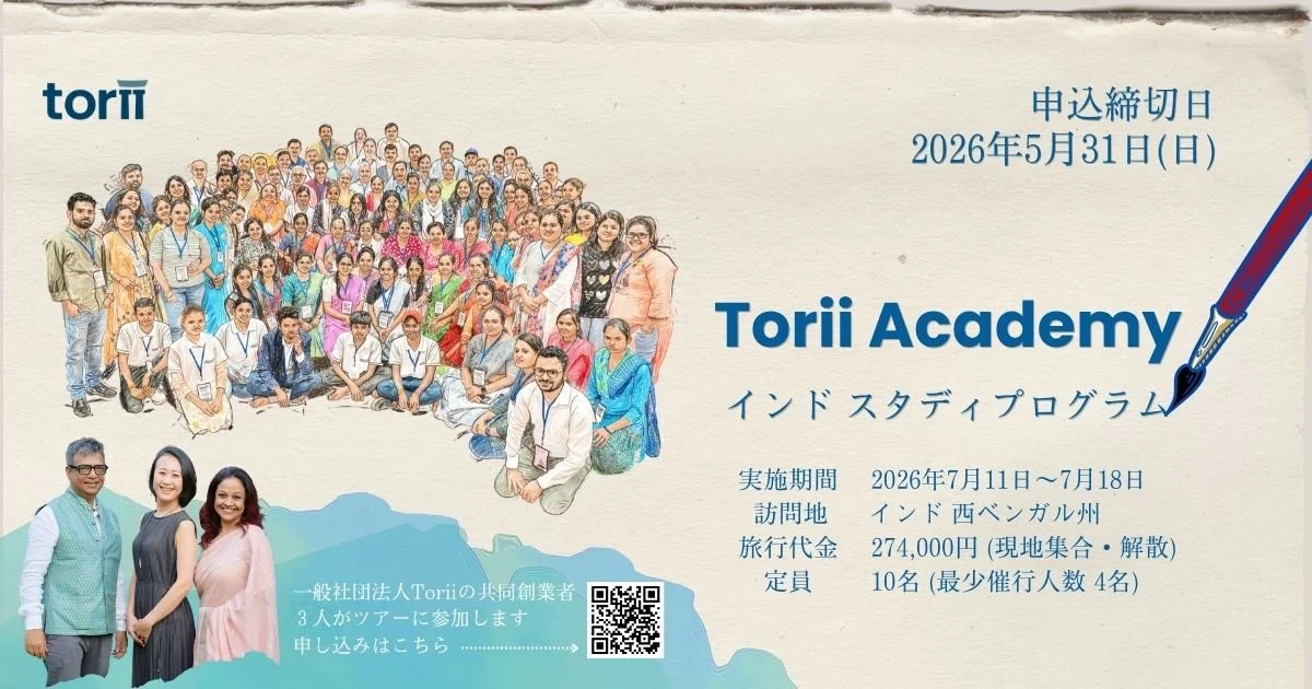 インドの現場で、逆境を越えて歩んできた人々と出会い、対話を重ねるフィールドスタディプログラム「Torii Academy」の第1回の募集を開始しました。